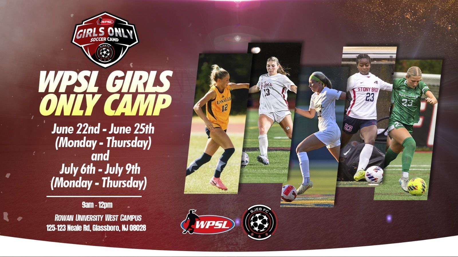 This year, we will be at a new location. The Rowan West Campus will be the new home for the WPSL Girls-Only camps.